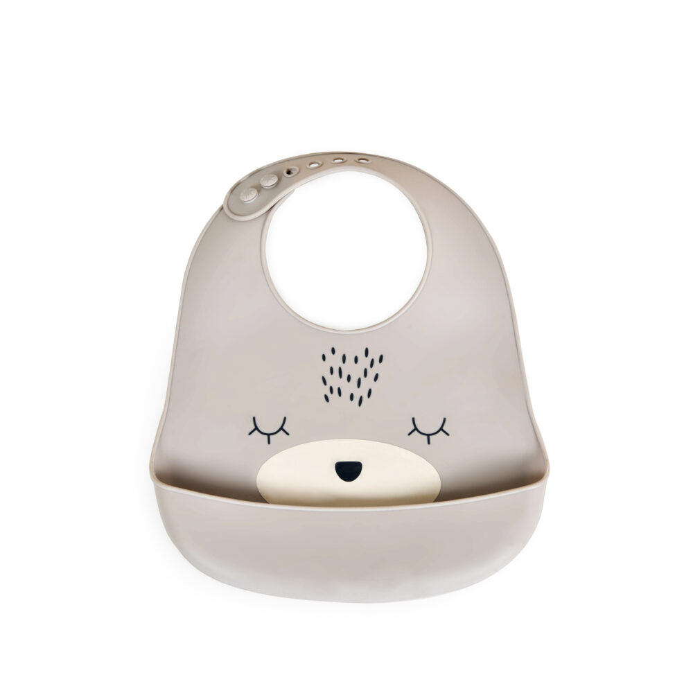 Βρεφική σαλιάρα απο απαλή σιλικόνη και μεγάλη τσέπη για να προστατεύει τα ρουχαλάκια του μωρού από λεκέδες.