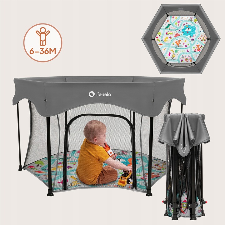 Εξάγωνο υφασμάτινο πάρκο που προσφέρει αρκετό χώρο για κίνηση και παιχνίδι.