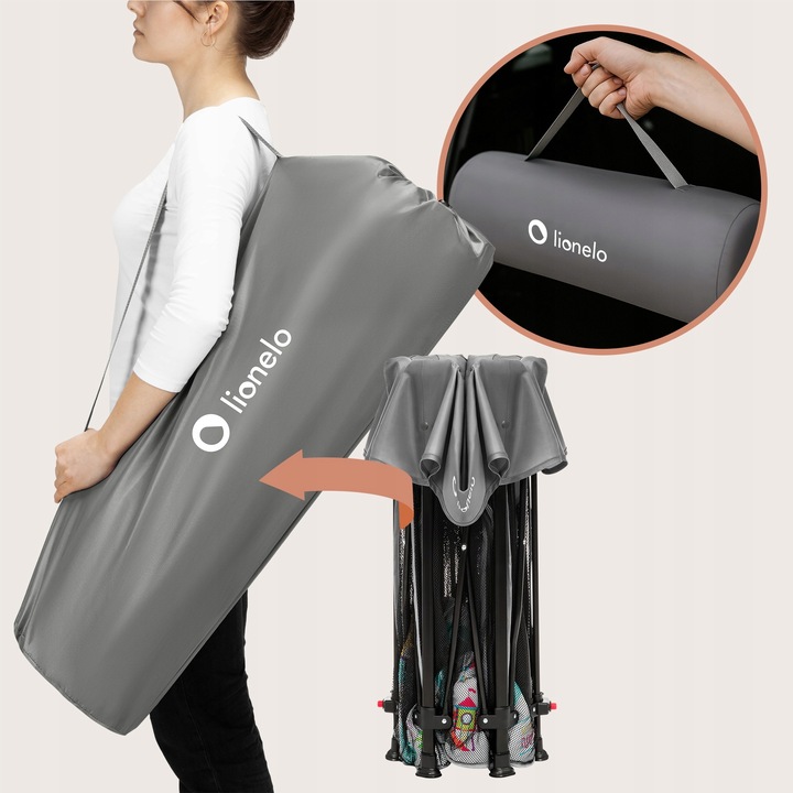 Χάρη στον εύκολο και γρήγορο μηχανισμό συναρμολόγησης και αποσυναρμολόγησης χωρίς εργαλεία, το παρκοκρέβατο διπλώνει σε συμπαγές μέγεθος, αποθηκεύεται εύκολα και μεταφέρεται άνετα. Η ελαφριά κατασκευή και η τσάντα μεταφοράς που περιλαμβάνεται το καθιστούν ιδανικό για διακοπές, επισκέψεις ή μετακίνηση μέσα στο σπίτι.