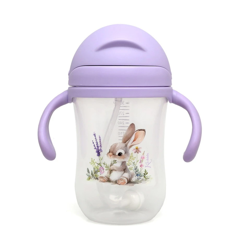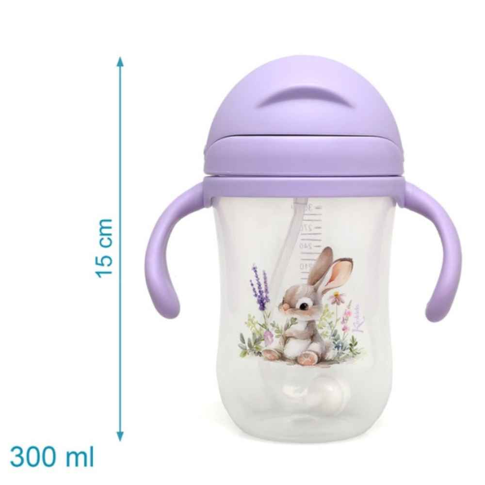 Εκπαιδευτικό παγούρι της σειράς Levander Bunny από την Ισπανική Kiokids, με ανατομικές λαβές και αντισταθμισμένο καλαμάκι για να πίνει το μικρό σας όπως και να κρατάει το ποτηράκι.