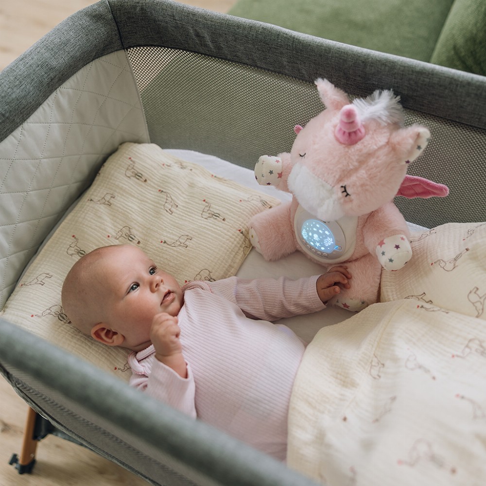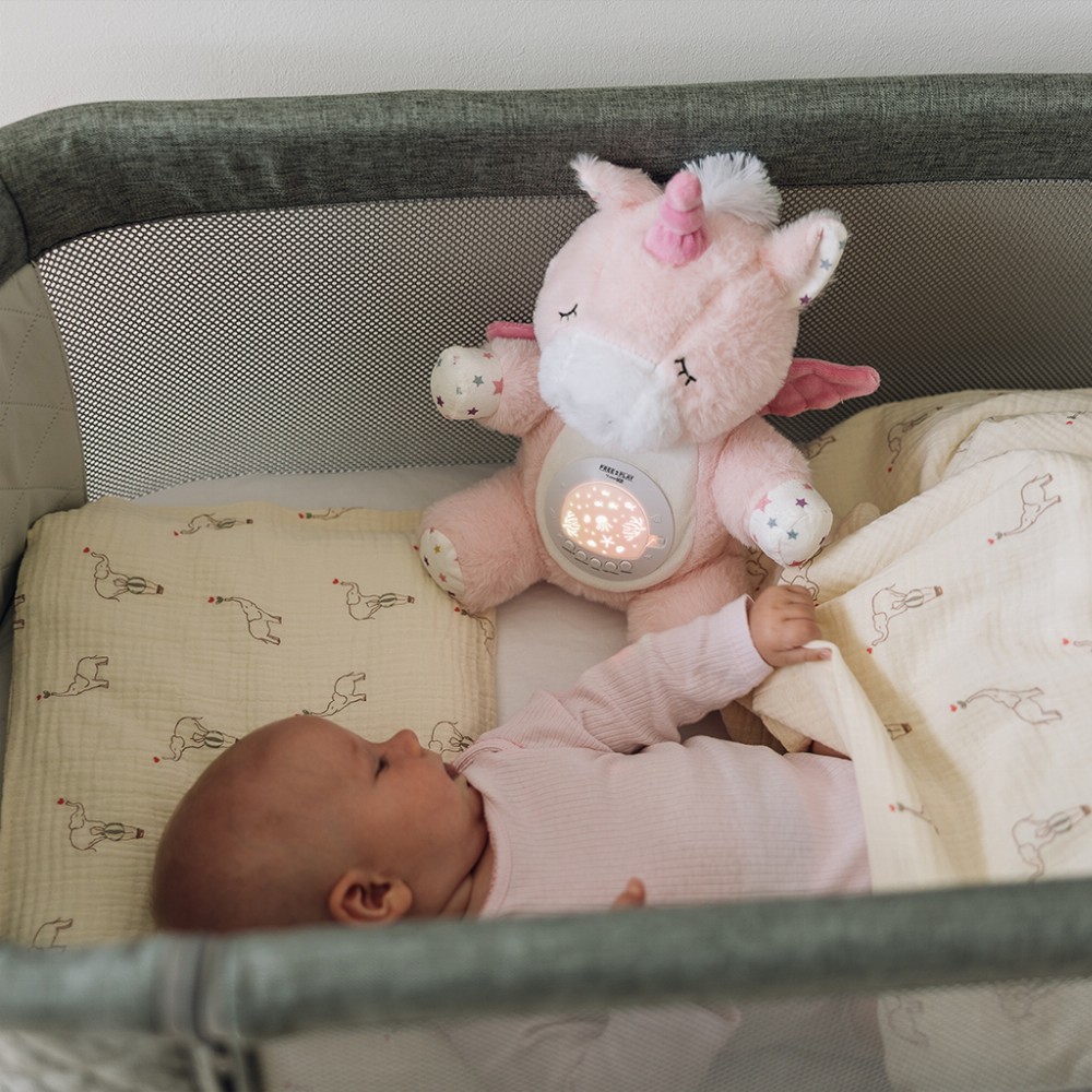 Ο προτζέκτορας Free2Play με κινούμενο κεφάλι, μουσική και προβολή είναι ένας υπέροχος σύντροφος που βοηθά στη δημιουργία μιας ήρεμης και χαλαρωτικής ατμόσφαιρας για τον ύπνο του μικρού σας. Αυτός ο απαλός λούτρινος φίλος κουνάει απαλά το κεφάλι του για να συνοδεύσει το παιδί σας στον κόσμο των ονείρων. Καθώς το παιδί σας παρακολουθεί την απαλή προβολή και ακούει την ηρεμιστική μελωδία, θα χαλαρώσει σταδιακά και θα κοιμηθεί.