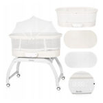 Ένα πλαίσιο με 4 ρόδες σας επιτρέπει να μετακινείτε το λίκνο ανάλογα με τις τρέχουσες απαιτήσεις σας. Χάρη σε αυτό, ο γονέας μπορεί πάντα να παρακολουθεί το μωρό – ανεξάρτητα από το μέρος. Είναι σημαντικό ότι η καλαθούνα μπορεί να αφαιρεθεί και μπορεί να χρησιμοποιηθεί χωρίς πλαίσιο.
