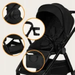 Το καρότσι μπορεί να λειτουργήσει εύκολα με το ένα χέρι γιατί τα κουμπιά λειτουργιών «θυμούνται» την τελευταία θέση, γεγονός που διευκολύνει, για παράδειγμα, την αφαίρεση του πορτ-μπεμπέ ή τη μετακίνηση του καθίσματος. Αυτό κάνει τη λειτουργία πολύ βολική.