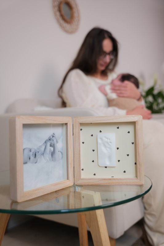 Μπορεί να σταθεί παντού! Το Double Frame – Pretty Hearts είναι ιδανικό αντικείμενο για διακόσμηση δωματίου, γραφείου ή και παιδικου δωρματίου. Συνδυάζει αρμονικά ένα αποτύπωμα μωρού και μια φωτογραφία. Το δίπλό κάδρο προσθέτει μια γοητευτική πινελιά στη διακόσμησή με το διπλής όψης φόντο. Μπορείτε να χρησιμοποιήσετε την μια πλευρά με τις καρδούλες ή το ήσυχο μπεζ της πίσω όψης. Η συσκευασία περιλαμβάνει υποαλλεργικό πηλό, ρολό και οδηγίες για την εύκολη δημιουργία του αποτυπώματος.