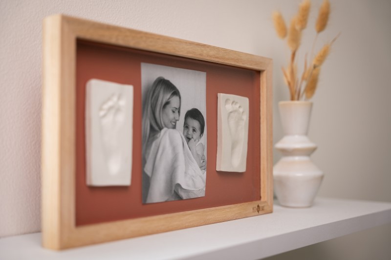Το 2 Prints Frame – Rainbow Terracotta έχει σχεδιαστεί για να εμφανίζει δύο αποτυπώματα μωρών και μια φωτογραφία.