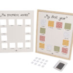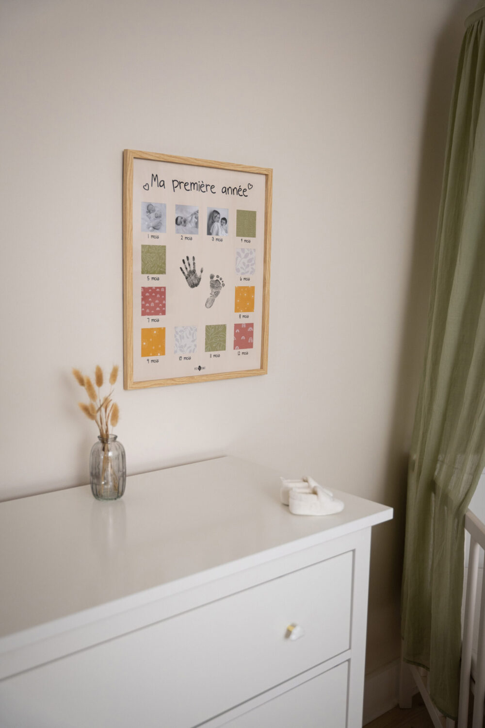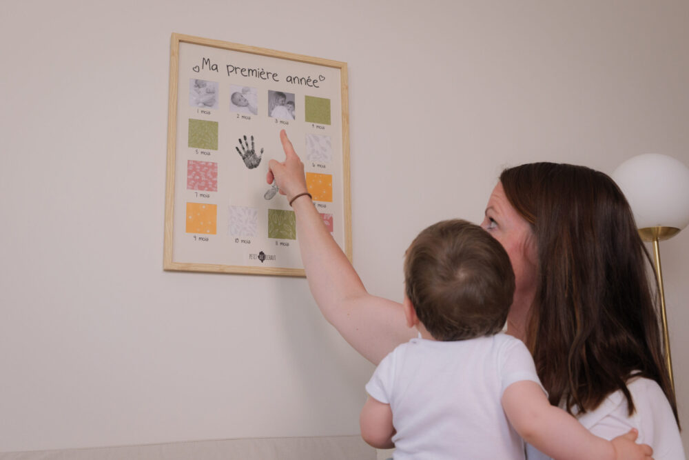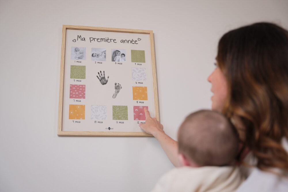 Το My First Year Frame θα σας βοηθήσει να παρακολουθήσετε το πόσο μεγάλωσε μέσα στον χρόνο και να διακοσμήσετε τον χώρο του μωρού ή και τον δικό σας με μια υπέροχη κορνίζα!12 παραθυράκια που πλαισιώνουν κάθε φωτογραφία ορόσημο και ένα χώρο στο κέντρο της αφίσας για το πρώτο τους αποτύπωμα χωρίς μελάνι. Το My First Year Frame είναι διπλής όψης είτε στα αγγλικά είτε στα γαλλικά και το φόντο του είναι διακοσμημένο με τα υπέροχα μοτίβα της Petit Artichaut, προσθέτοντας μια διακοσμητική πινελιά περιμένοντας τις φωτογραφίες των επόμενων μηνών.