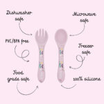 Η μαλακή υφή και ο εργονομικός σχεδιασμός βοηθούν το παιδί να μάθει να τρώει μόνο του με ασφάλεια και άνεση. Ιδανικά για καθημερινή χρήση στο σπίτι, στον παιδικό σταθμό ή στη βόλτα!