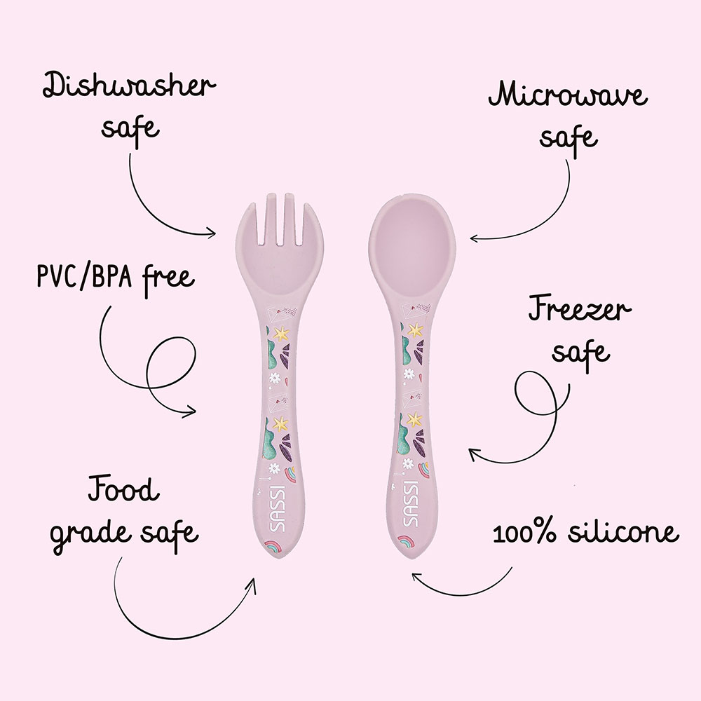 Sassi Σετ Κουτάλι και Πιρούνι Σιλικόνης Sparkly The Unicorn